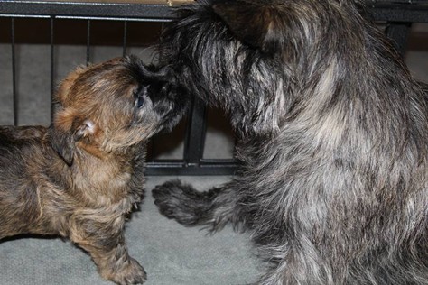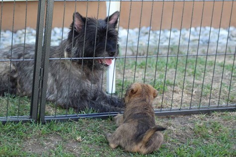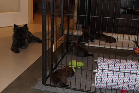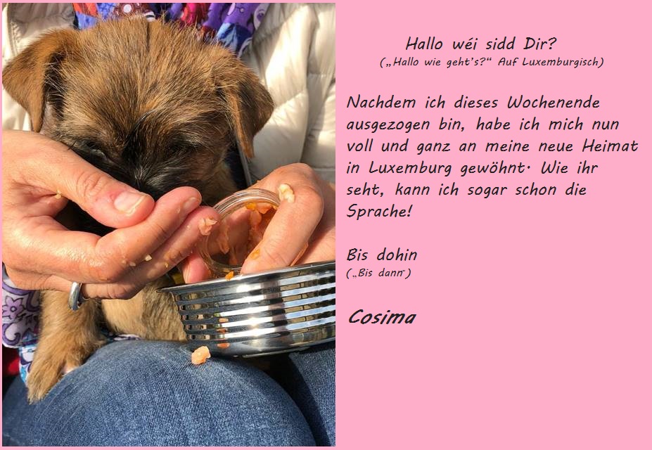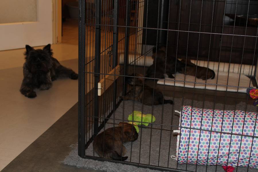 Nach den aufregenden letzten Wochen, war es diese Woche für uns fünf Babys an der Zeit ein paar ruhige Tage mit unserer Familie zu verbringen. Damit meine ich natürlich Tante Emma, unsere Schwester Mira und die anderen Vierbeiner, die wir bisher noch nicht gesehen (aber gehört) hatten. Selbstverständlich war die Freude von beiden Seiten groß, als endlich die Türe aufging und alle vereint waren - Insbesondere Mira und Fernando waren ganz begeistert von uns! Die beiden trauen sich auch jetzt noch ab und an in die Höhle der Löwen und spielen mit uns (wir beißen sie in die Füße oder versuchen zu trinken, was irgendwie nicht so wie bei Mami klappt, aber was soll's). Da die Großfamilie nun auch mehr Platz braucht, haben die Zweibeiner außerdem unseren Auslauf vergrößert, sodass wir nun reichlich Platz haben uns auszutoben. Zum Schluss folgt noch das Beste: Bei der Familienzusammenkunft haben uns die anderen erzählt, was sie leckeres zu Essen bekommen (BARF), worauf wir ebenfalls Appetit hierauf bekamen. Als hätten die Zweibeiner dies geahnt, landete daraufhin prompt ein Schlag leckeres Rindfleisch mit Karotten in unserem Napf! Einstimmig beschlossen wir, dass es dies in Zukunft öfter geben soll, mal sehen was sich die Zweibeiner einfallen lassen....