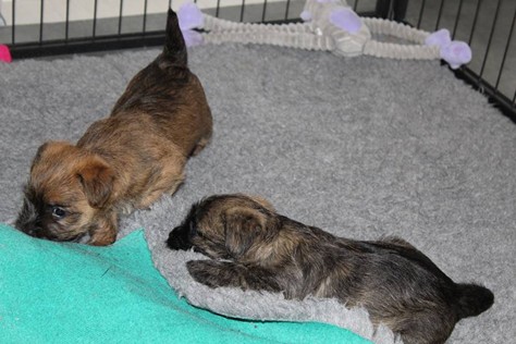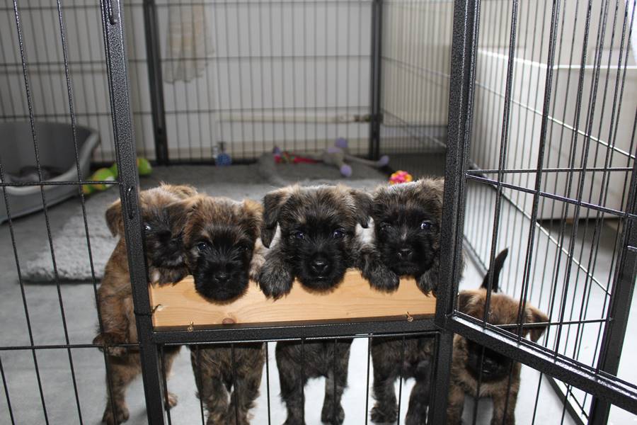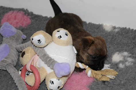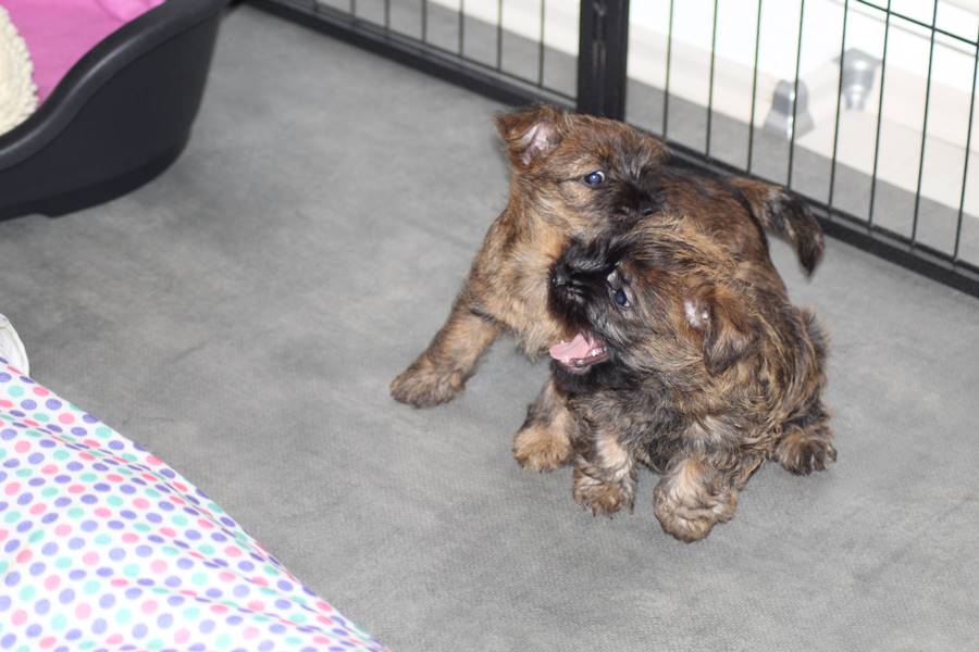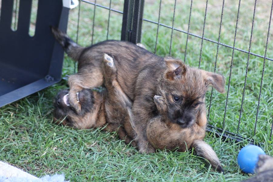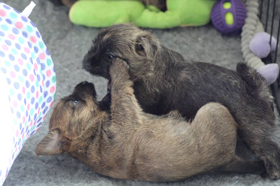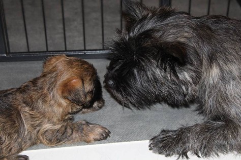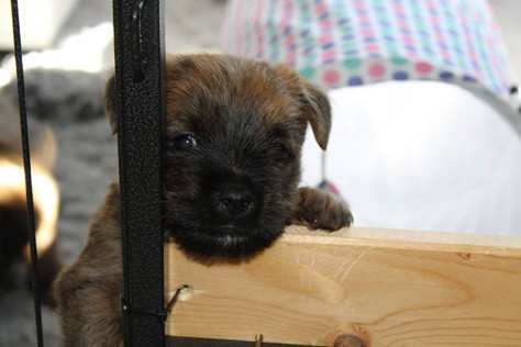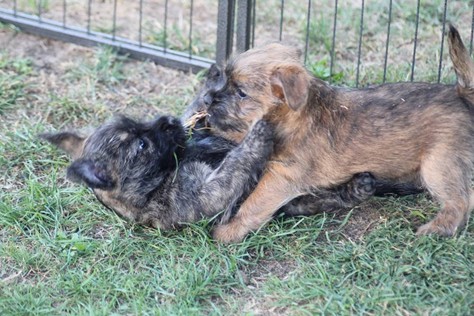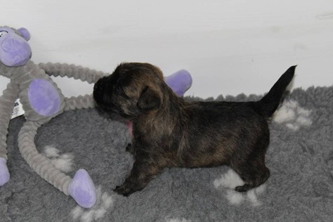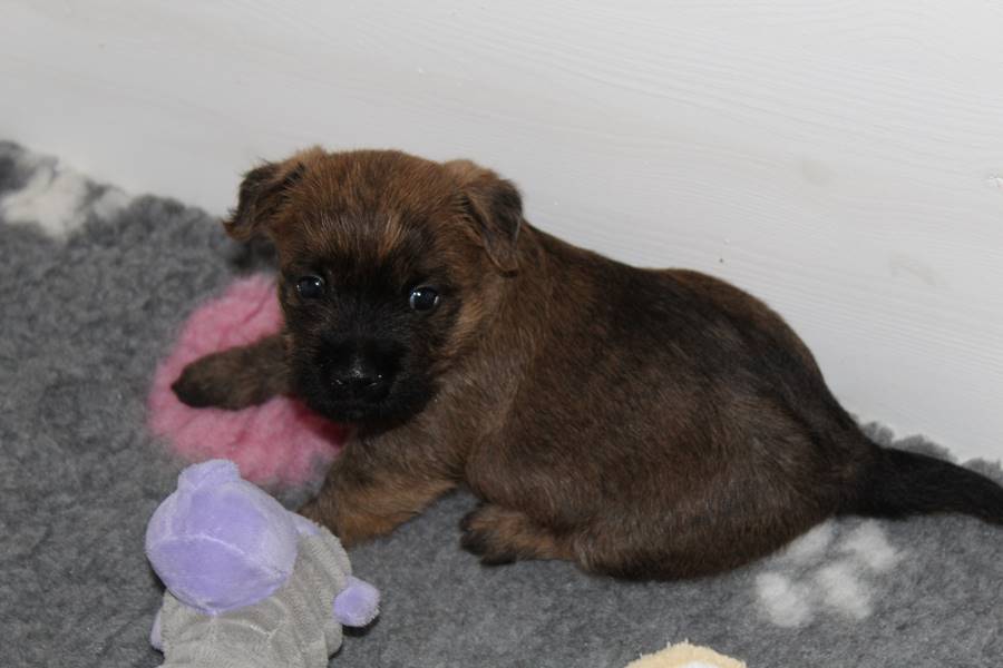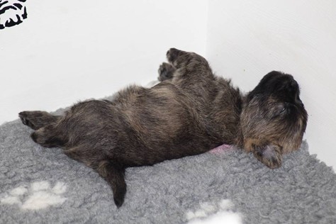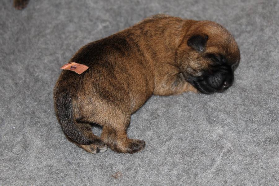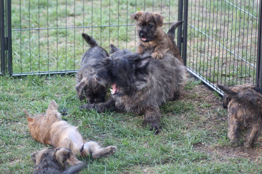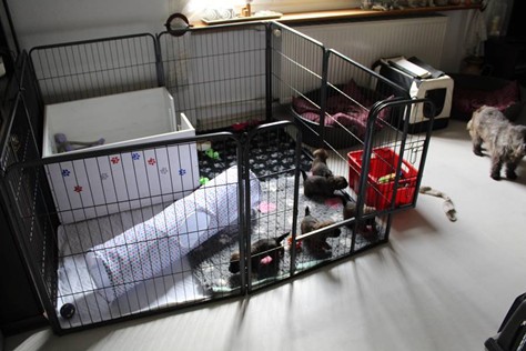 Nachdem wir am Donnerstag (26.07.18) begonnen hatten den Count-Down für die lang ersehnte Geburt unseres C-Wurfs, die für dem 28.07.18 - den 63. Tag nach dem Decken - angesetzt war, zu starten, belehrte uns unsere hochschwangere Gwenny eines Besseren. Am Abend des heißen Sommertages begann Gwenny zu hecheln. Wir schoben es zu erst auf die Hitze, schnell zeigte sich aber, dass Gwenny wohl auch aus einem anderen Grund hechelte. Sie zog sich in ihre Wurfkiste zurück und begann alles für die bevorstehende Geburt bereit zu machen. Im gemachten Nest tankte sie noch einmal Kraft für den großen Augenblick, der am nächsten Morgen (27.07.18) gekommen war. So platze um ungefähr 6:00 Uhr in der Frühe die erste Fruchtblase - der erste Welpe wurde um 6:19 Uhr geboren. In den nächsten 3 Stunden folgten vier weitere Welpen, sodass Gwenny (Great Gwenny Wizard of Wishes) und Mitch (Camster Cairns X-tra Hot`n Spicy) nun stolze Eltern von einem bezaubernden Mädchen und vier properen Jungs sind.