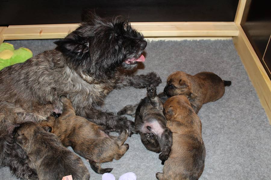 Nicht nur Gwenny, sondern auch ihre fünf Sprösslinge haben sich inzwischen von den Strapazen der Geburt erholt und sind wohl auf. So weicht Gwenny den Kleinen kaum von der Seite, ist sehr fürsorglich und passt super auf die Rasselbande auf. Es scheint also, als seien nicht nur wir Menschen, sondern auch Mama Gwenny und ihre Kinder überglücklich.