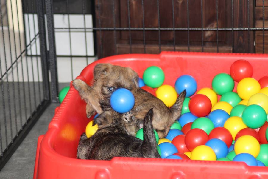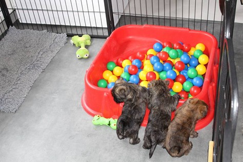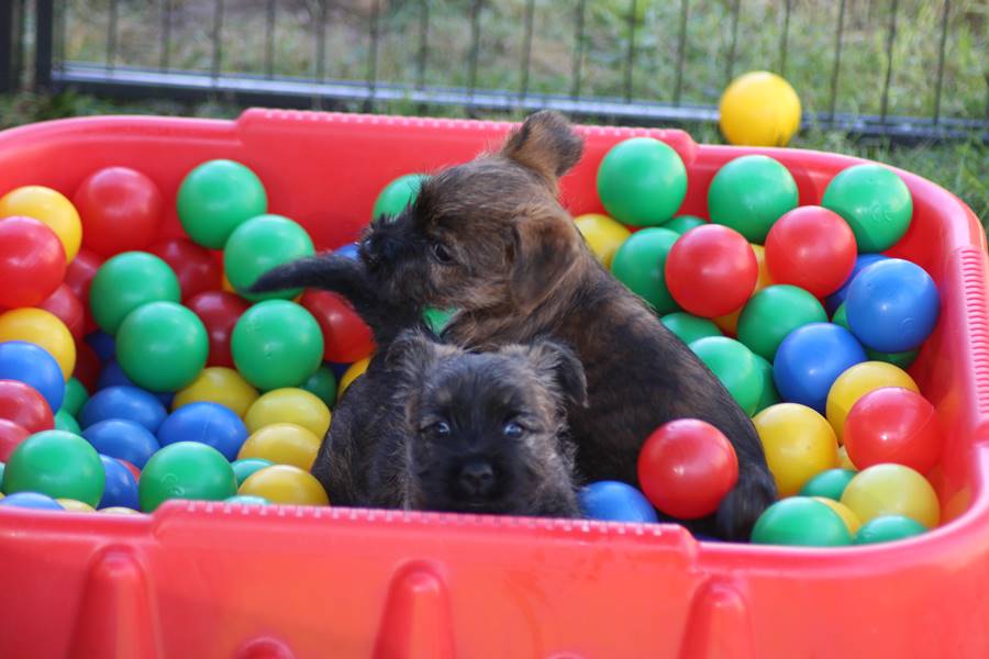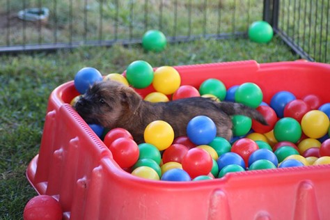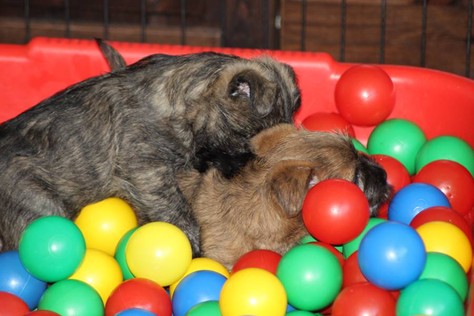 Endlich haben die Zweibeiner begriffen, dass wir schon groß sind, wurde ja nach sechs Wochen auch mal Zeit! Jetzt bekommen wir nicht mehr nur solche Baby-Spielsachen, sondern sogar ein Bällebad für "große Hunde". Zugegeben: Anfangs war uns das Teil ganz schon suspekt, aber nachdem Bob Marley und Fernando (ich sag ja für "Große") uns gezeigt haben was man damit alles tolles machen kann, versuchten wir es auch ein Mal. Fazit: Wir leben noch, das Bällebad kann also weiterhin verwendet werden. Außerdem bekommen wir nun echtes BARF, wie die Großen, wir haben ja auch einen Bärenhunger... Dieses Wochenende durften wir bei strahlendem Sonnenschein dann auch endlich in den Garten und uns dort austoben. Das ist vielleicht ein Spaß: Wir haben einen riesigen Auslauf bekommen und Spielsachen, da können wir toben und spielen bis zum umfallen... Was nachdem wir uns ausgepowert haben dann vor Müdigkeit folgt.