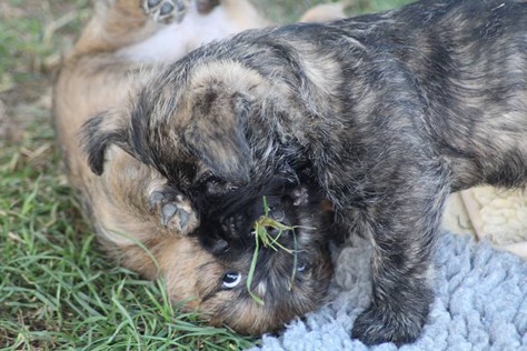 Inzwischen sind wir Babys sieben Wochen alt. Kaum zu glauben, oder? Vor sieben Wochen waren wir gerade zwei Tage alt und sahen aus wie fünf kleine (teilweise etwas hell geratene) Maulwürfe. Heute haben wir dieses Aussehen abgelegt, verhalten uns aber stattdessen wie Maulwürfe. Grund: Der Welpenauslauf im Garten ist einfach zu klein. Lösung des Problems: Mit vereinten Kräften buddeln wir einen Tunnel auf die andere Seite des Zauns in Freiheit. Die Zweibeiner sehen diese Lösung aber leider nicht als sinnvoll an und versuchen unseren Plan zu verhindern - bisher erfolgreicher als wir... Aber ihr werdet sehen, nächste Woche sind wir Babys die Sieger!