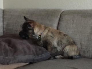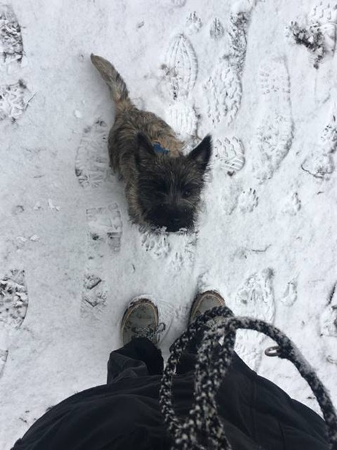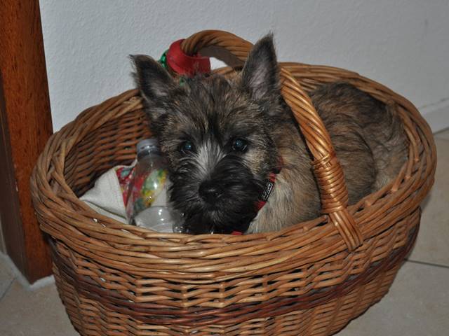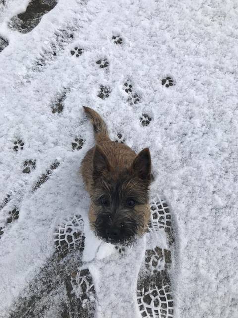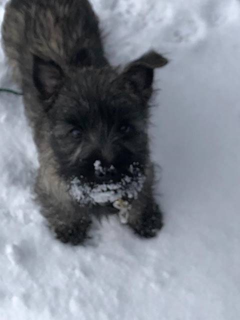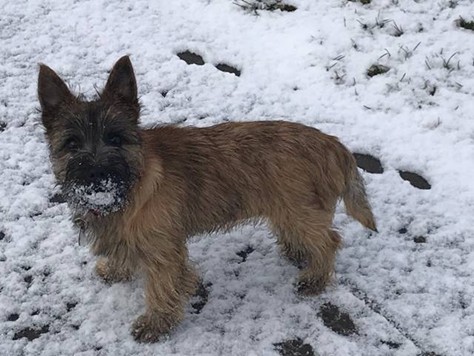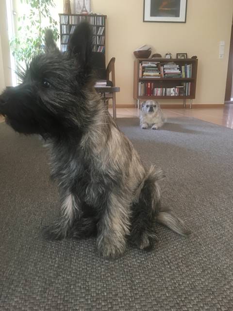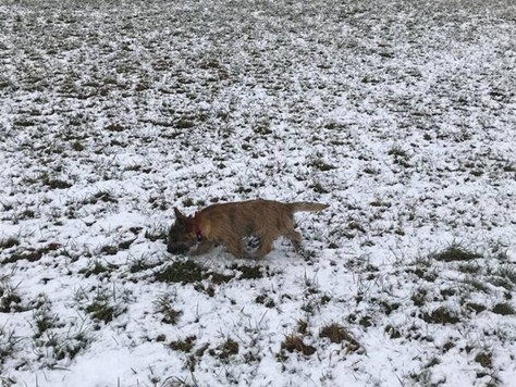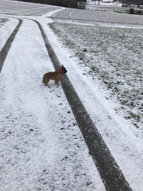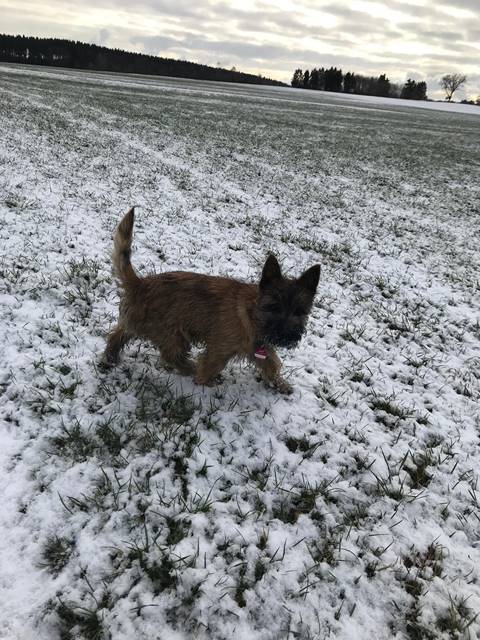 "Aus meinem neuen Zuhause meldet sich heute die kleine Dorie und ich erzähle Euch nach den Feiertagen mal kurz, wie es mir hier in Unterkirnach so geht. Also ich verbringe den Tag mit vielen interessanten Dingen (eigentlich ist wirklich ALLES interessant für mich, hi hi…) und ich muss sagen, mein Kumpel Merlin sowie mein Chef bringen eine Engelsgeduld auf, wenn ich mal wieder einen Blumentopf auf der Terrasse erklommen habe, die Schneeflocken jage oder mit meinem Spielzeug durch die Wohnung tobe. Ich bin mit meinen Leuten sehr gerne und viel (bei Wind und Wetter) draußen und laufe bzw. renne am liebsten mit Merlin über die Wiesen und durch den Wald, bis mein Chef mich auf den Arm nimmt und eine Weile trägt, weil ich mich schonen soll, sagt er... Natürlich komme ich sofort zu ihm, wenn mein Chef mich ruft: Das hat er mir beigebracht und ich sehe ein, dass es gut ist, seinem Wunsch nachzukommen. Auch wenn er sagt, ich soll sitzen, kann ich das inzwischen und die Bindung an eine Leine nehme ich gern in Kauf und sehe die Sache locker, gleichauf mit meinem Chef zu laufen, obwohl ich lieber rennen möchte. Wir haben uns arrangiert... Andere Menschen interessieren mich natürlich auch sehr, eigentlich ist jeder Mensch, dem wir begegnen, automatisch mein Freund; alle sagen ja auch: ‚Oh je, was für ein hübscher kleiner Hund' und so weiter, da muss man sich als Weibchen ja geschmeichelt vorkommen, oder? Das mit dem Autofahren genießen ich ebenfalls sehr, ich hab’s gemütlich in meiner Box und verlasse mich auf den Chef, dass er uns gut zum Ziel bringt… Wenn wir im Pferdestall sind, finde ich es ganz toll, dass die Pferde auf der Koppel sind und ich viel Zeit habe, um durch die dann leeren Boxen zu stürmen. Die großen Tiere sind mir noch etwas unheimlich und ich bin froh, dass mein Chef immer gut aufpasst und mich da nicht meiner Neugier überlässt… Ich bin dann lieber bei unseren Freunden im Haus und spiele mit den großen Hunden: Ganz schön ist es dabei, dass ich noch unter die Couch passe und sie mich dort nicht erwischen… Anschließend gibt es immer ein leckeres Mahl für mich mit allem, was ich brauche und auch gerne mag. Auch einen Knochen mit Fleisch und Knorpel habe ich schon mal zu Weihnachten bekommen, hat mir gut geschmeckt und ich habe alles noch besser vertragen :-) Mein Chef hat mich natürlich auch schon bei der Tierärztin vorgestellt, die mich mit langen Nadeln traktierte, das war nicht so angenehm. Aber die Ärztin ist sehr zufrieden, ich wiege mittlerweile schon 3.400 Gramm und bin inzwischen fast 50cm lang. Zwischendurch und wenn dann der Tag vorbei ist, genieße ich mein Körbchen oder auch das von meinem Kumpel Merlin. Er mag es inzwischen (na ja, eher immer öfter, hi hi…), wenn wir zusammen sein Kissen teilen, ansonsten hat unser Chef uns auch schon mal auf seine Couchdecke gelassen, das war auch schön. Insgesamt freue ich mich sehr, dass ich auch hier ein wunderbares Heim gefunden habe, in dem ich sehr zufrieden sein kann und auch bin. Mein Chef, mein Kumpel Merlin und ich, wir wünschen Euch ein ganz wunderbares, gesundes und zufriedenes 2019 und wir würden uns freuen, mal wieder etwas von Euch zu hören, ja?"...