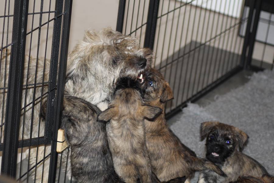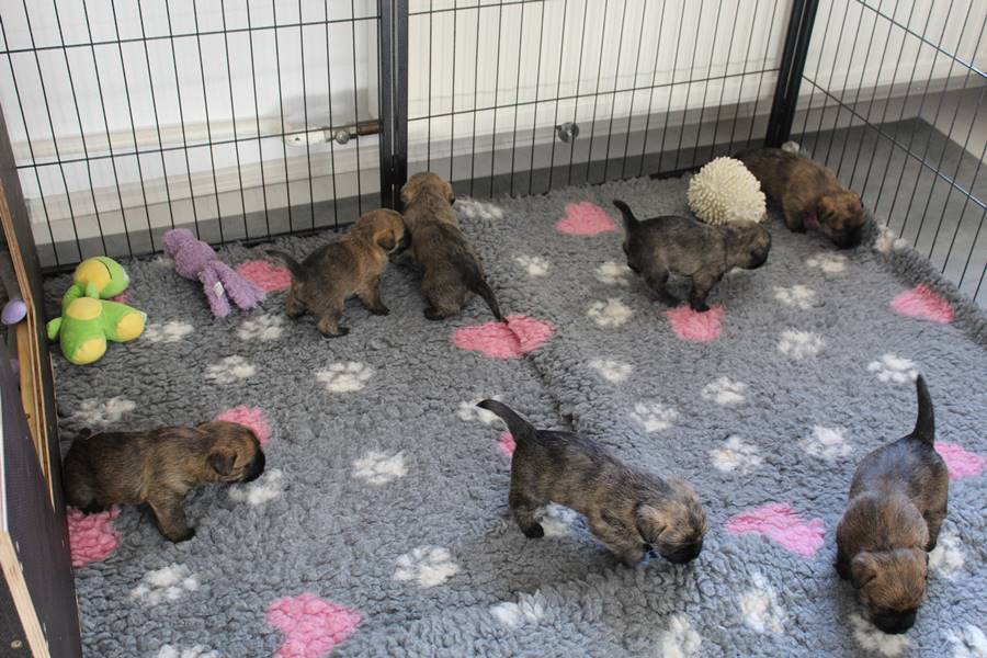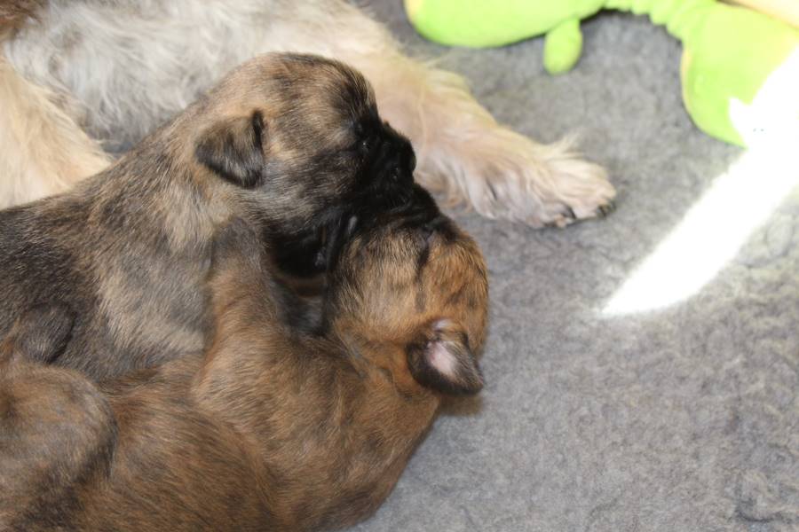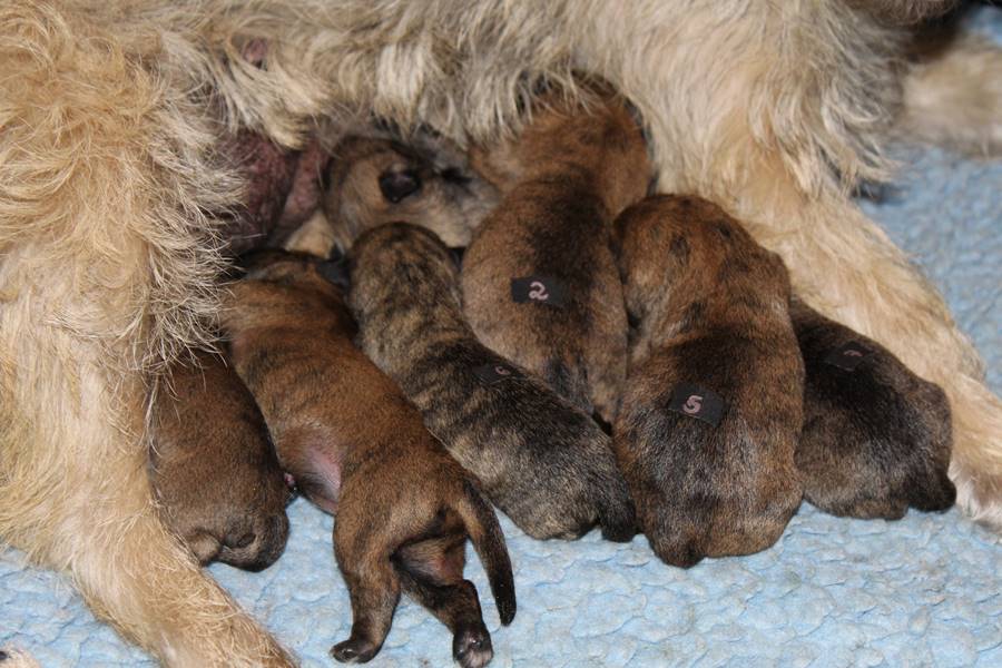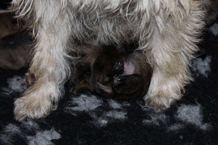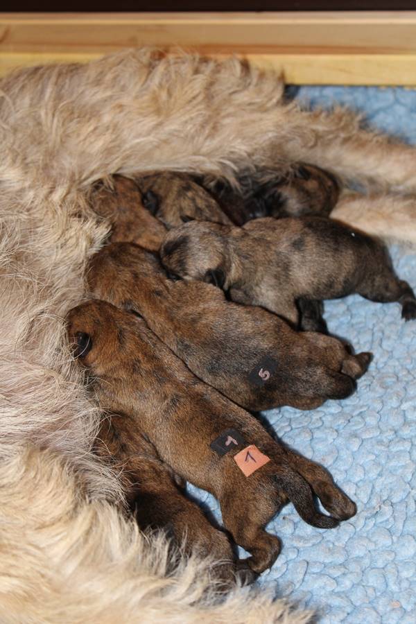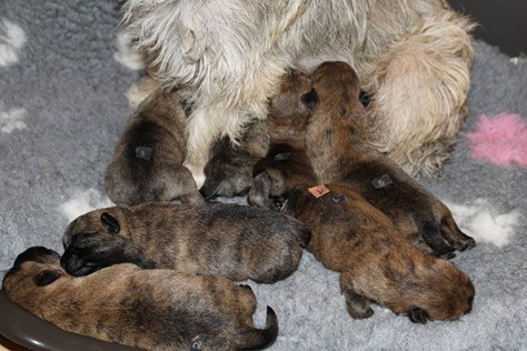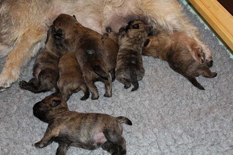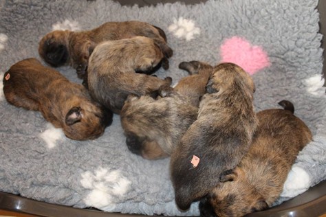 Kurz vor dem Auszug unseres C-Wurfs von Gwenny, bemerkte die hochschwangere Emma, dass es uns anscheinend langweilig wird. So kam sie heute Morgen (24.09.2018) zum glorreichen Entschluss uns drei Tage vor dem errechneten Geburtstermin sieben putzmuntere Welpen (genau so viele, wie auch bei ihrem ersten Wurf) in die Wurfkiste zu setzen. Nun freuen wir uns über vier bezaubernde Mädchen und drei propere Jungs, die genau wie auch ihre Mutter wohl auf sind.