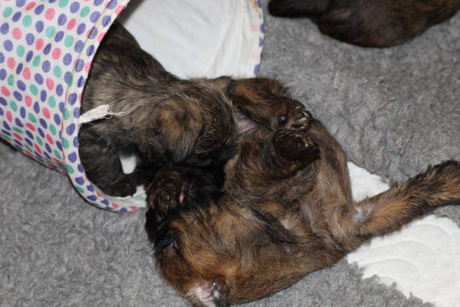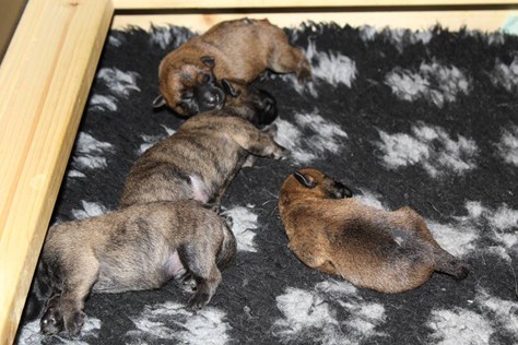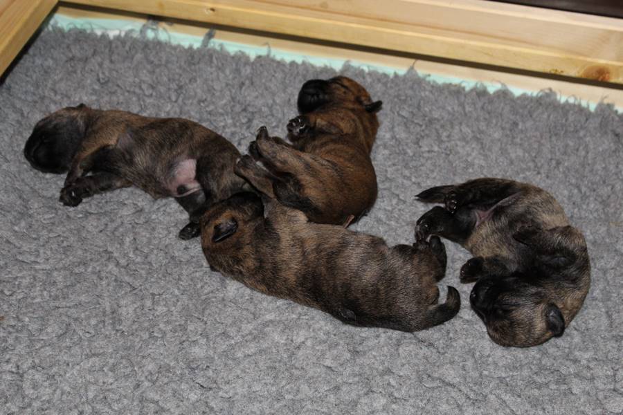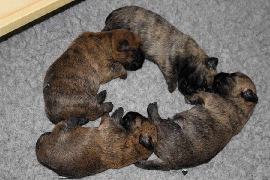 Es waren einmal sieben Zwerge. Sie lebten mit ihrer Königin (Mama) Emma in einem wunderschönen Schloss, das man im ganzen Land auch als Wurfkiste kannte. Die vier Prinzessinnen und drei Prinzen waren gerade acht Tage alt, hatten das Schloss, ihre Mami und das Fußvolk (die Zweibeiner) aber bereits vollkommen in ihren Bann gezogen. So verbrachten sie ihre Zeit damit, von der köstlichen Milch ihrer Mutter zu speisen oder sich in ihren Bettchen auszuruhen. Entsprechend wuchsen sie prächtig und auch die gute Fee (Zuchtwartin) war sehr zufrieden mit den sieben Zwergen...