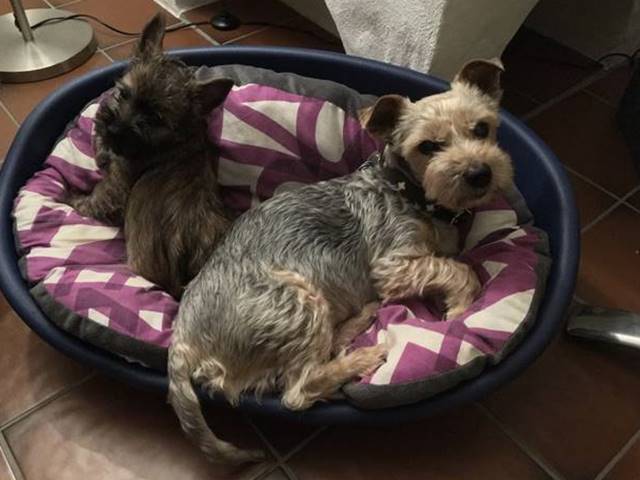 "Filou grüßt Sie herzlich und sendet einen feuchten Hundekuss aus der wunderschönen Pfalz. Es geht ihm hier, mitten in der Toskana Deutschlands, ganz wunderbar. Er und sein weiterer vierbeiniger Mitbewohner Gizmo erleben hier schöne Spaziergänge, zwischen dem endlos erscheinenden Pfälzer Wald und den vielen Weinbergen. Gizmo ist hier allerdings eher wie ein Mentor, als ein herkömmlicher Hundekumpel. Um Kumpel zu treffen geht er mit Eifer in die Welpenstunde und wickelt Mensch wie Hund um seine charmante Pfote. Ein Leben ohne Filou ist nicht mehr vorstellbar und wir genießen jeden Augenblick mit ihm."...