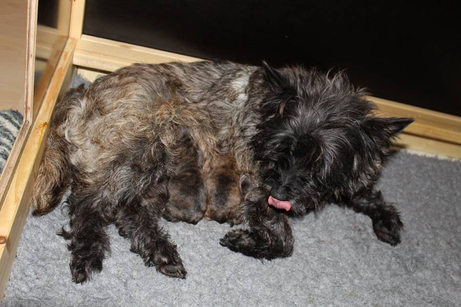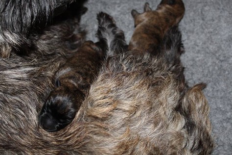 Es war an einem kalten, stürmischen Donnerstag Abend im März, als Gwenny bemerkte, dass die Geburt ihrer Babys nun nicht mehr fern sein konnte. Auch in der kommenden Nacht zum 6. März konnte sie keine Ruhe finden, doch ihre Kleinen wollten sich Zeit bis zum nächsten Morgen lassen. Gwenny war schon früh auf den Beinen, denn sie musste sich versichern, dass alles für die bevorstehende Geburt bereit war. So begann sie voller Tatendrang damit, ein Nest für ihre Babys herzurichten. Als sie hiermit fertig war, ließ auch die Geburt eines kleinen Buben nicht lange auf sich warten. Die Uhr hatte gerade acht geschlagen, als Finley mit einem Geburtsgewicht von 252 Gramm das Licht der Welt erblickte. Gwenny umsorgte ihren Erstgeborenen liebevoll, leckte ihn trocken und sorgte dafür dass er nicht friert. Bald begann der Kleine bei ihr zu trinken. Nach einer kurzen Verschnaufpause kam um 9.30 Uhr seine Schwester Feline mit einem Geburtsgewicht von 212 Gramm zur Welt. Auch um sie sorgte sich Gwenny sehr hingebungsvoll...