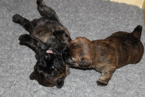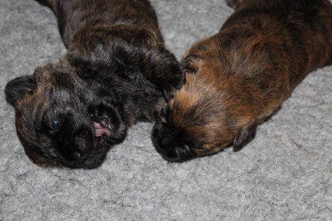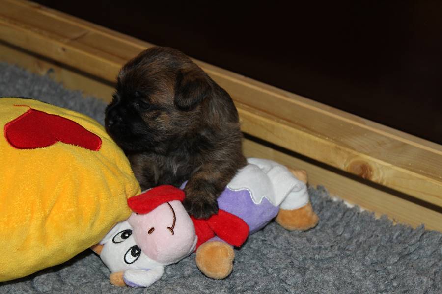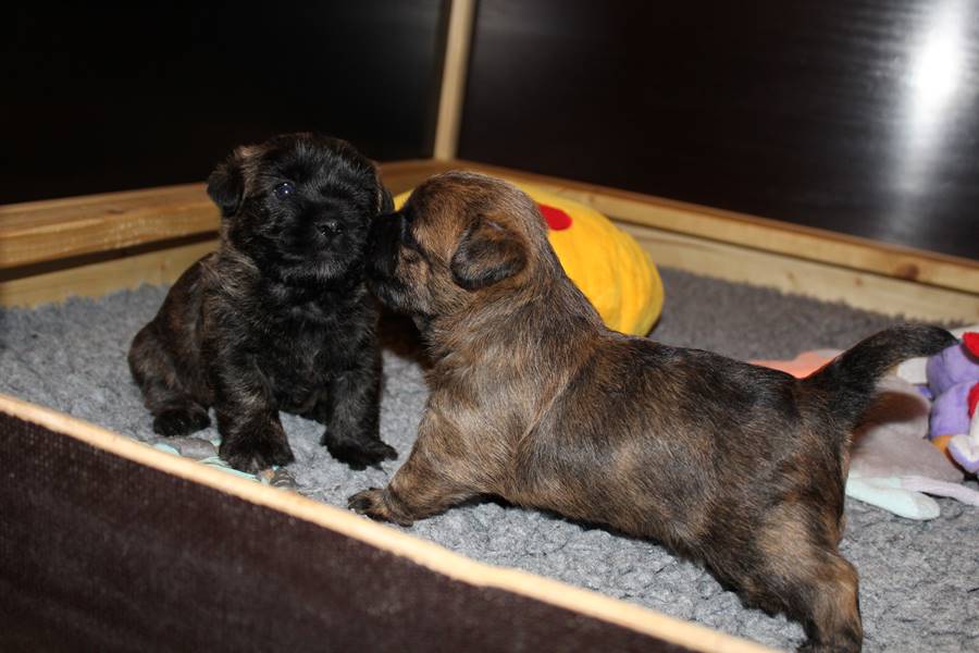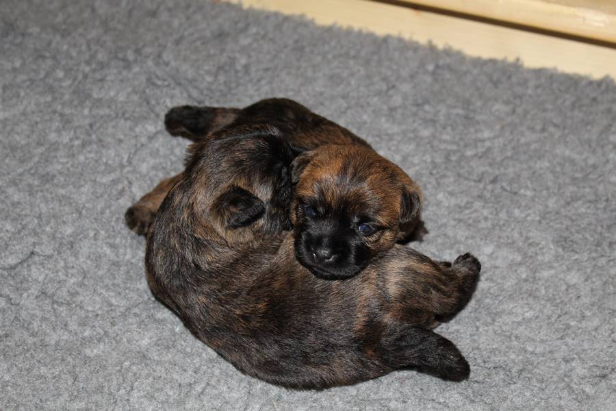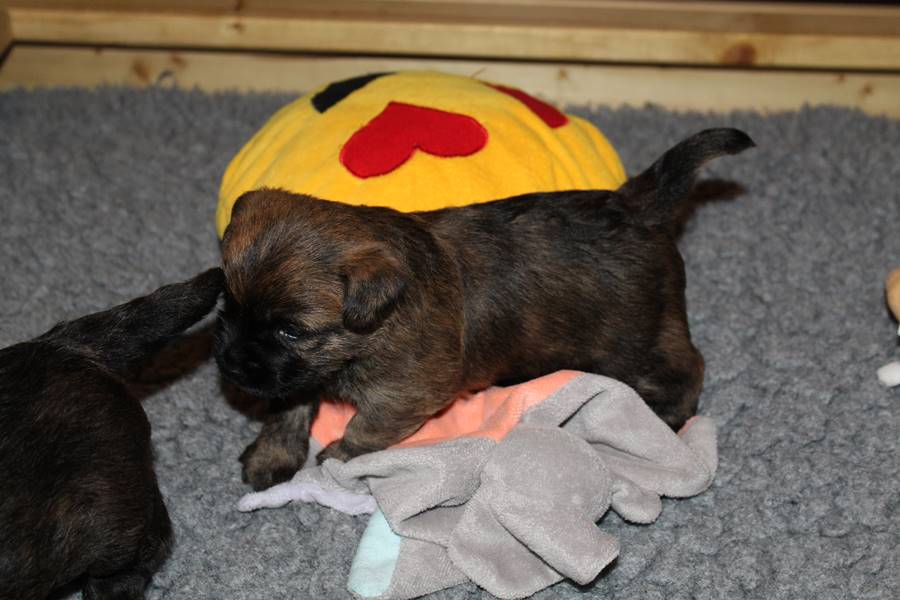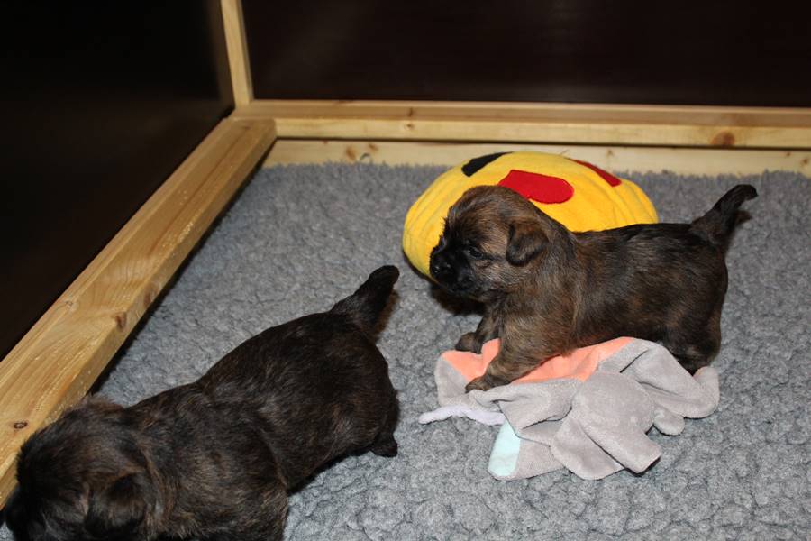 … Brüderchen und Schwesterchen wurden zusehends aktiver. Sie reagierten mittlerweile auf Geräusche und nahmen nun ihre Spielsachen und Herrchen und Frauchen wahr. Wie auch in den vergangenen zwei Wochen bemühte sich Gwenny unermüdlich um sie, sodass beide prächtig wuchsen ...