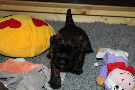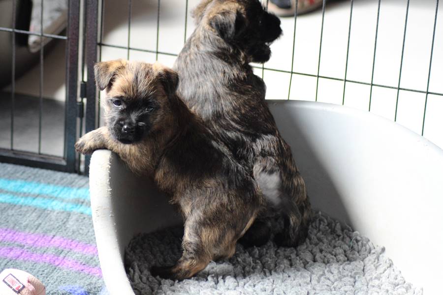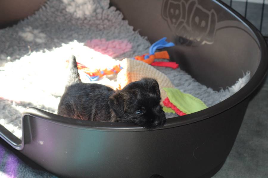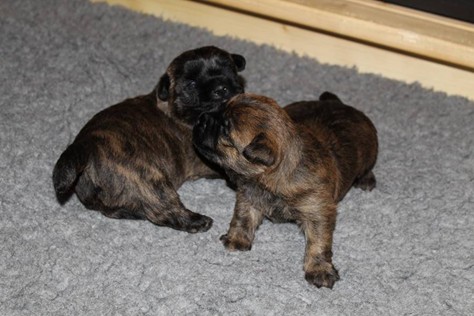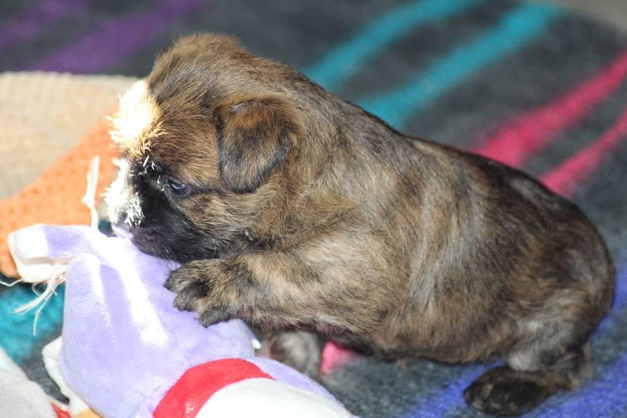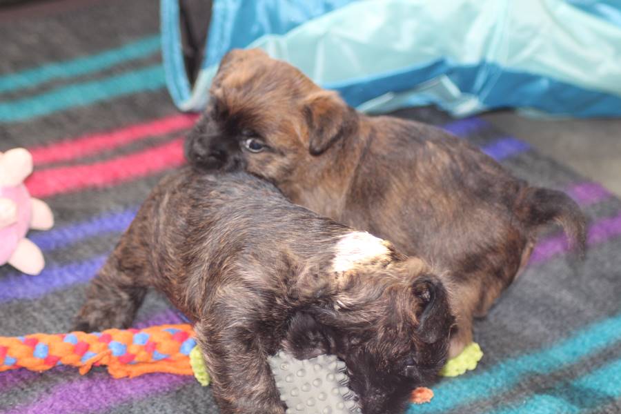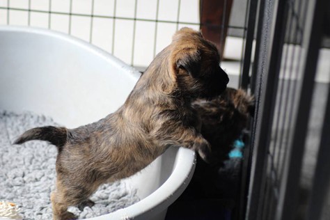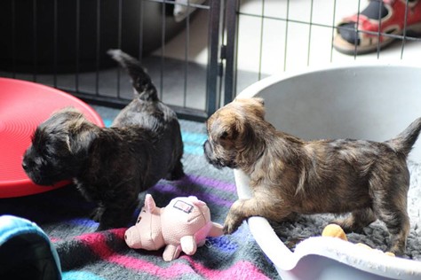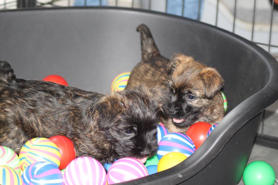 … Brüderchen und Schwesterchen wurden zusehends aktiver. Sie reagierten mittlerweile auf Geräusche und nahmen nun ihre Spielsachen und Herrchen und Frauchen wahr. Wie auch in den vergangenen zwei Wochen bemühte sich Gwenny unermüdlich um sie, sodass beide prächtig wuchsen ...