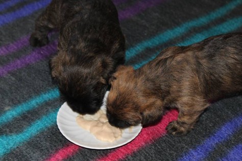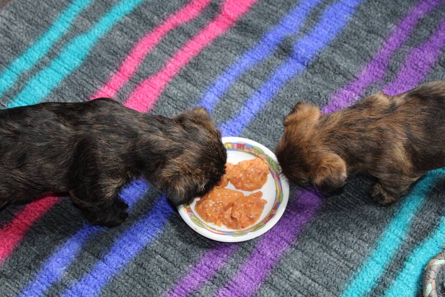 … Das Spielen im neuen Zuhause machte den Beiden sehr viel Spaß, denn es gab jeden Tag jede Menge Neues zu entdecken. Auch das Futter, das sie zusätzlich zur Milch bekamen, war inzwischen schon mehr geworden. Brüderchen und Schwesterchen hatten auch schon das erste BARF probieren dürfen...