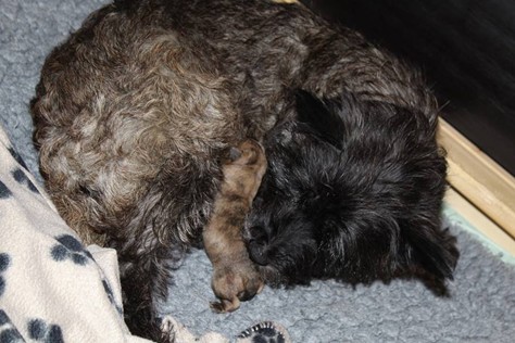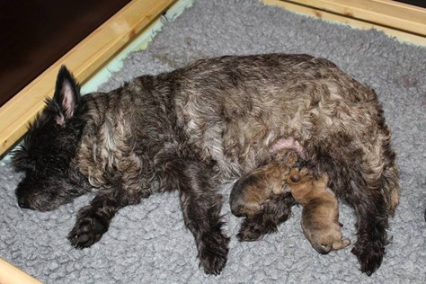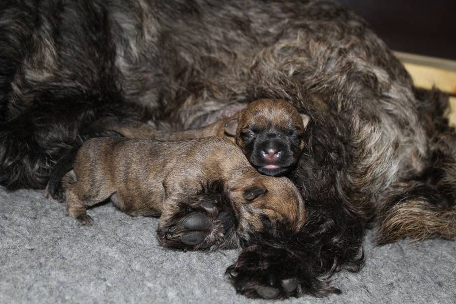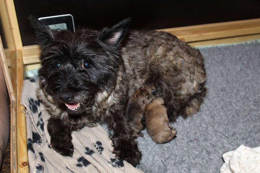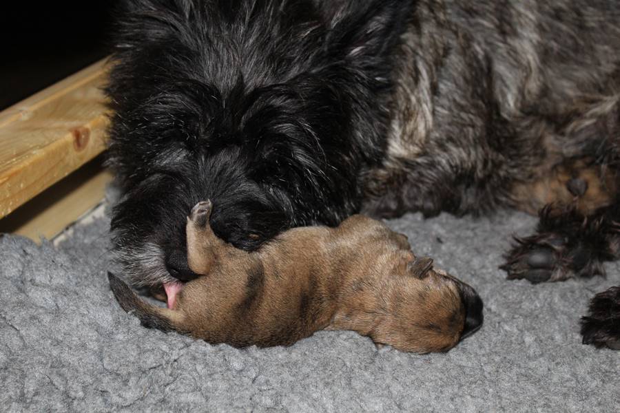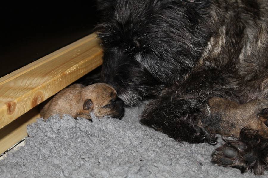 Am Donnerstag den 17. September brachte Gwenny in aller Herrgottsfrühe unseren G-Wurf zur Welt. Das erste Mädchen wurde um 3.42 Uhr geboren. Die zweite Prinzessin ließ noch etwas auf sich warten und erblickte erst um 6.00 Uhr das Licht der Welt. Gwenny meisterte die Geburt wie immer völlig problemlos, sodass sich eigentlich nur Frauchen und Herrchen von der Nachtschicht erholen mussten.