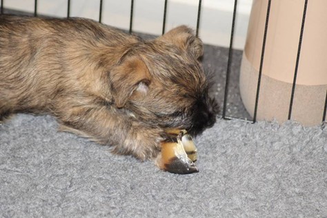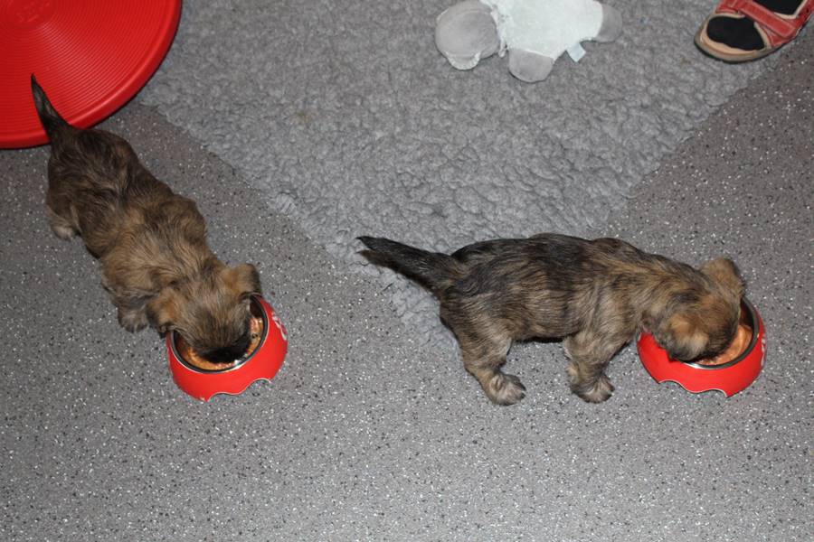 Unsere beiden Mädels legen beim Wachsen ein rasantes Tempo an den Tag. Wie soll es denn auch anders sein, wenn man beim Essen noch schneller ist als beim Wachsen? In dieser Woche gab es sehr viel Neues zu entdecken und zu probieren. So bekamen sie eine Karotte, am nächsten Tag ein bisschen Banane und sogar ein Stück hartgekochtes Ei haben sie schon probiert. Das fanden die Beiden vielleicht lecker... Auch das Kalbshuf zum Kauen haben sie nicht verschmäht. Sie sind jetzt schon so groß, da dachten wir, dass sie allmählich mal einen Namen brauchen. Und so wurden sie Great Golden Sky und Great Ruby Girl getauft.