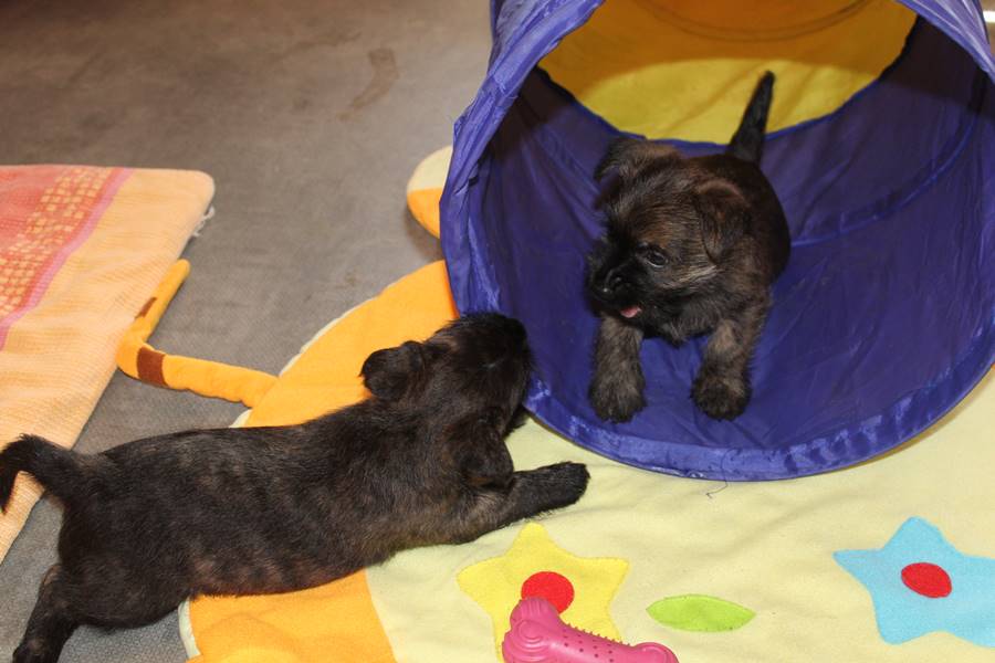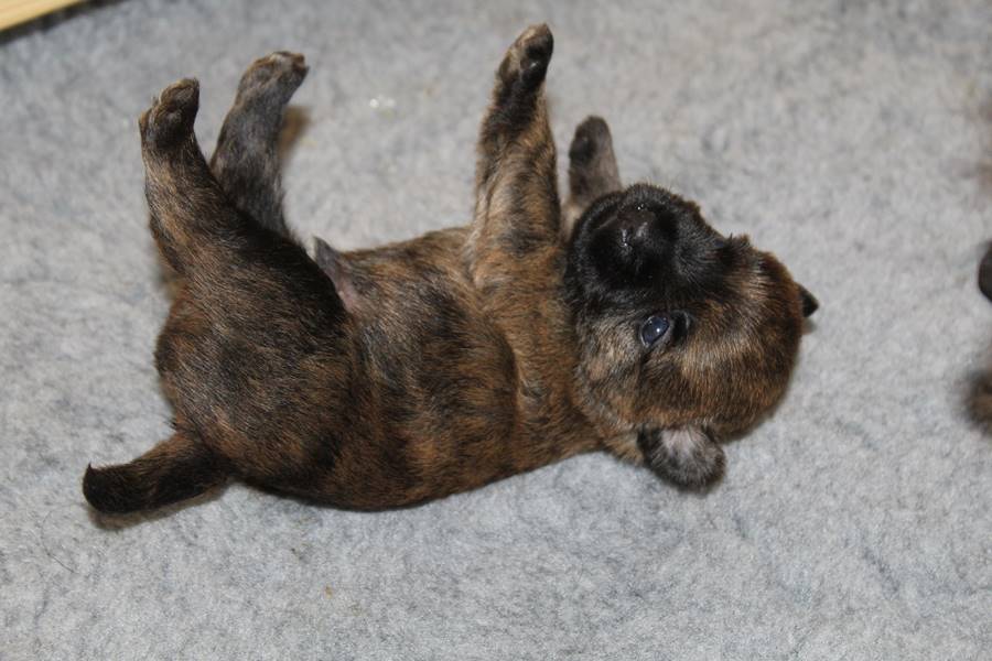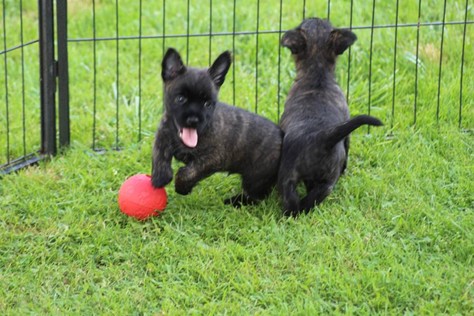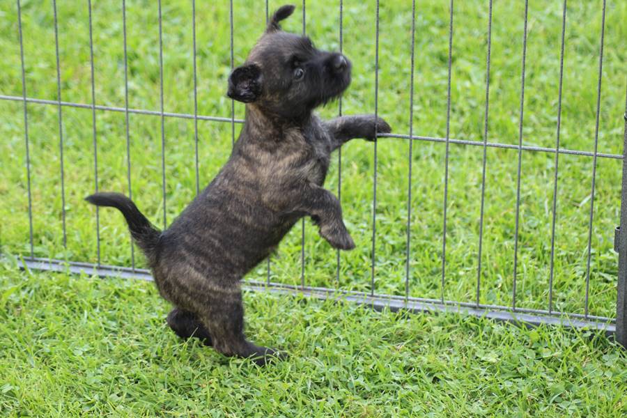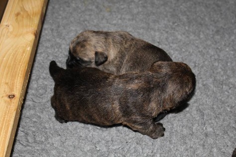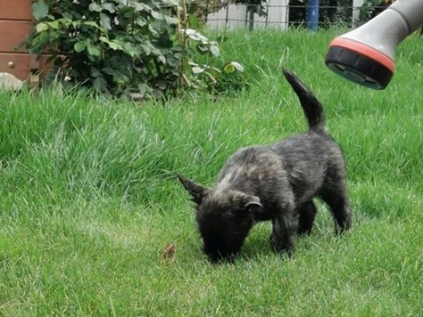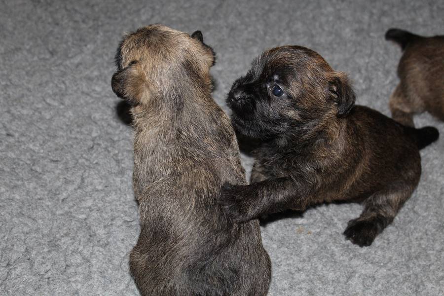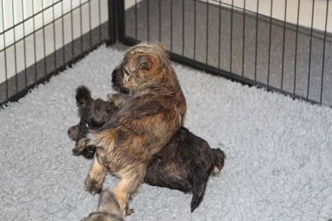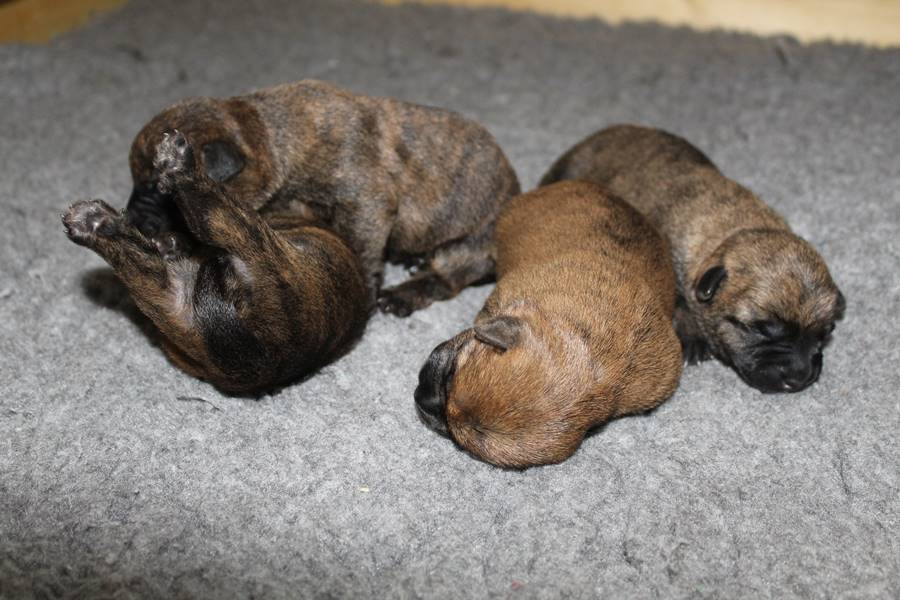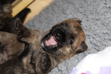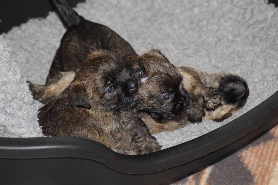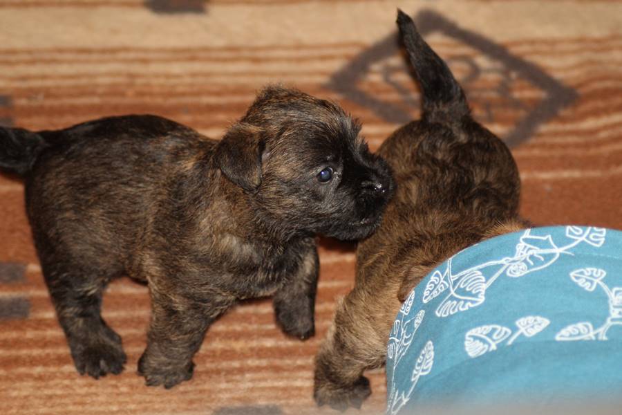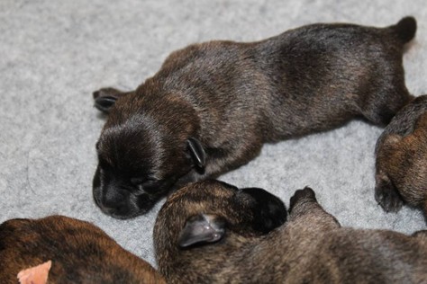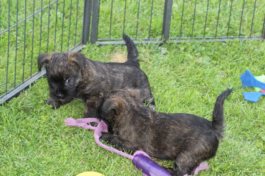 Da das Wetter momentan wieder so schlecht ist, dass die Kleinen nicht nach draußen können, toben sie drinnen umso wilder. Vergangene Woche ging die Reise mit dem Auto zum Tierarzt. Alle waren während der halbstündigen Fahrt recht brav. Beim Tierarzt zeigten sie, was ein echter Cairn-Terrier ist - Kein einziges Quieken. Die Zehn waren das Highlight der Tierarztpraxis. Alle wollten sie anschauen.