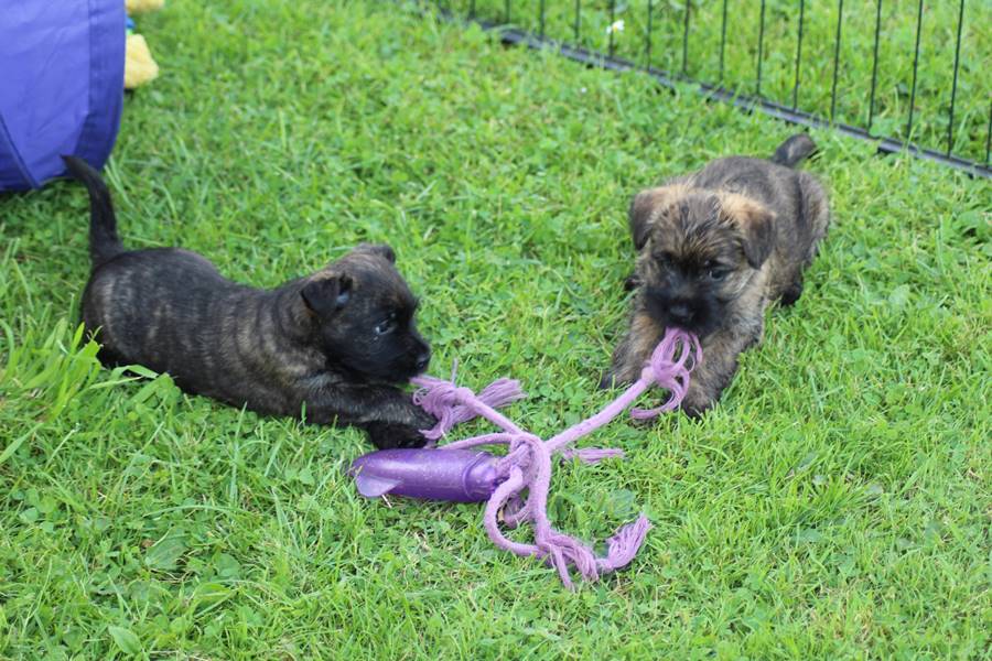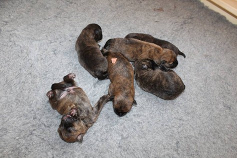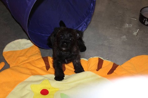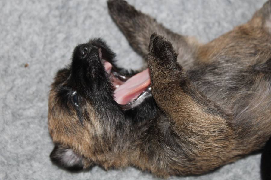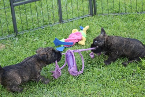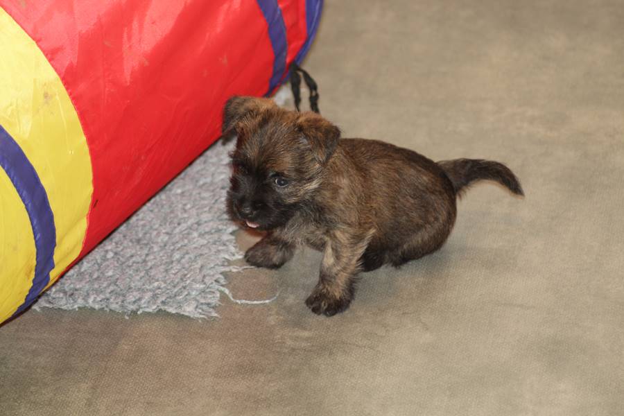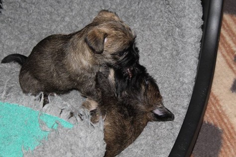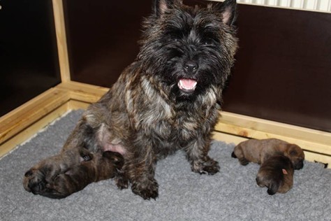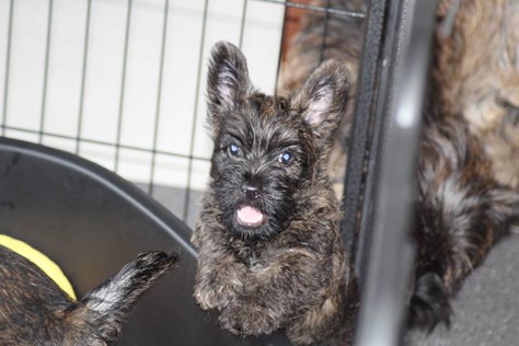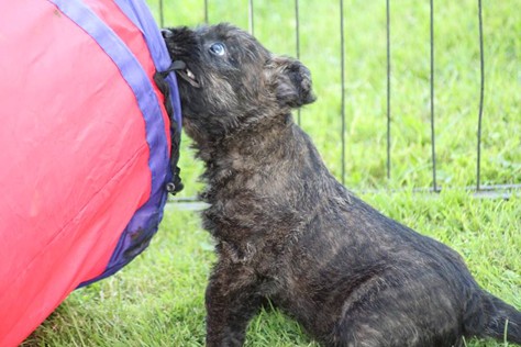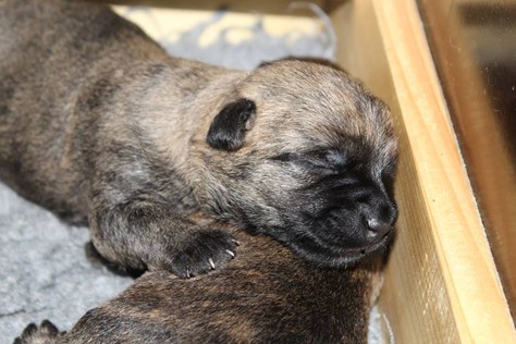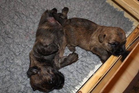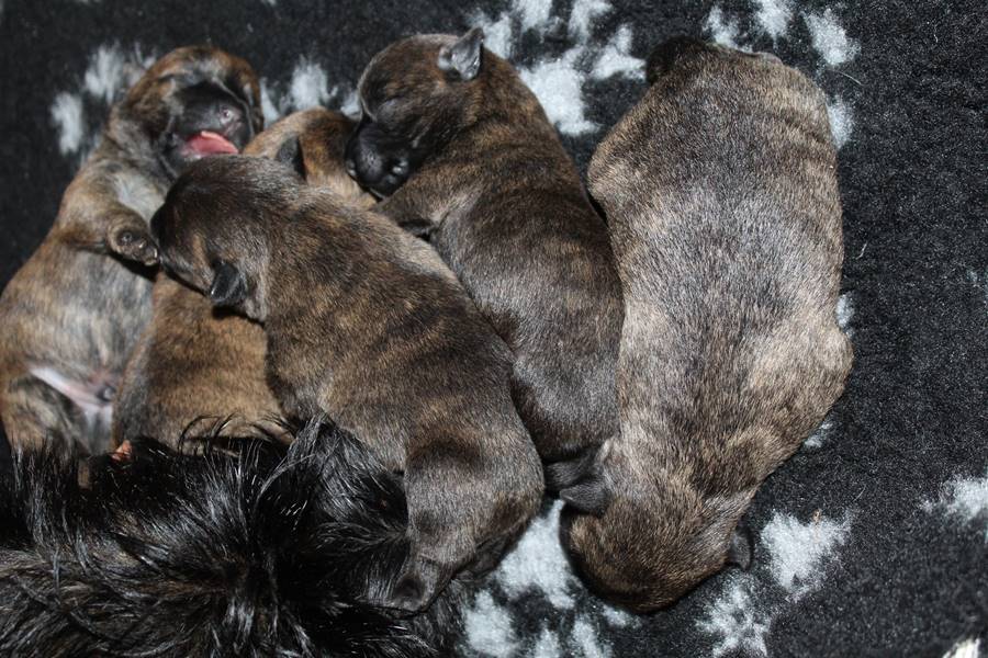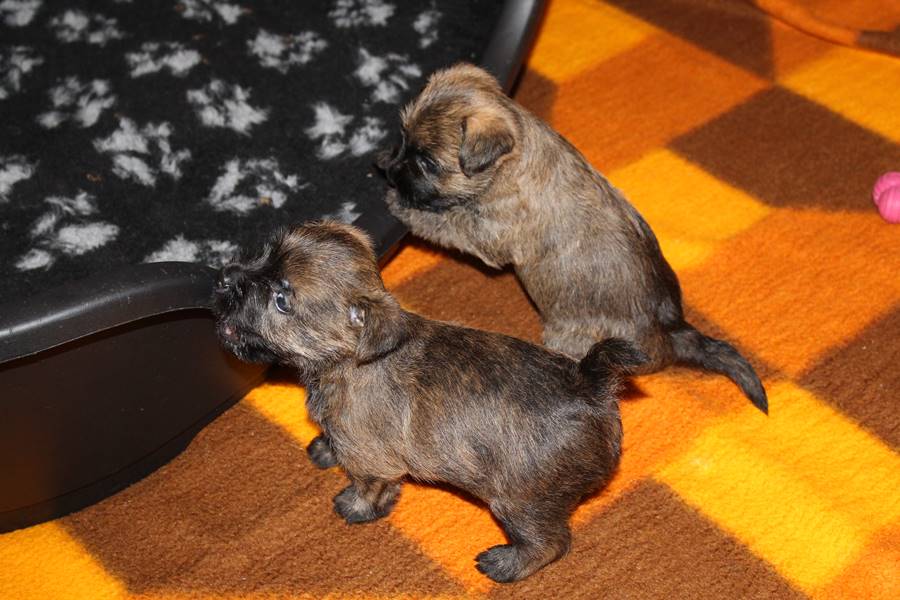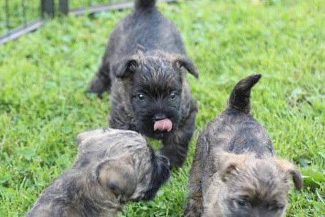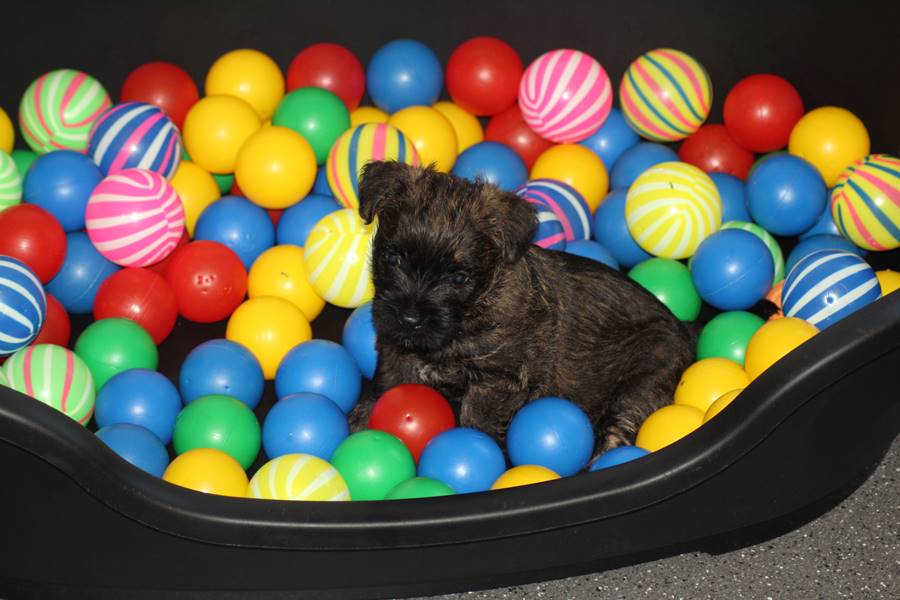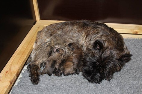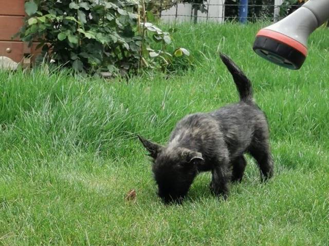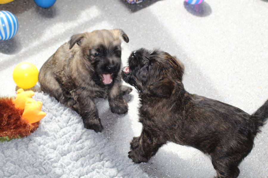 Da das Wetter momentan wieder so schlecht ist, dass die Kleinen nicht nach draußen können, toben sie drinnen umso wilder. Vergangene Woche ging die Reise mit dem Auto zum Tierarzt. Alle waren während der halbstündigen Fahrt recht brav. Beim Tierarzt zeigten sie, was ein echter Cairn-Terrier ist - Kein einziges Quieken. Die Zehn waren das Highlight der Tierarztpraxis. Alle wollten sie anschauen.