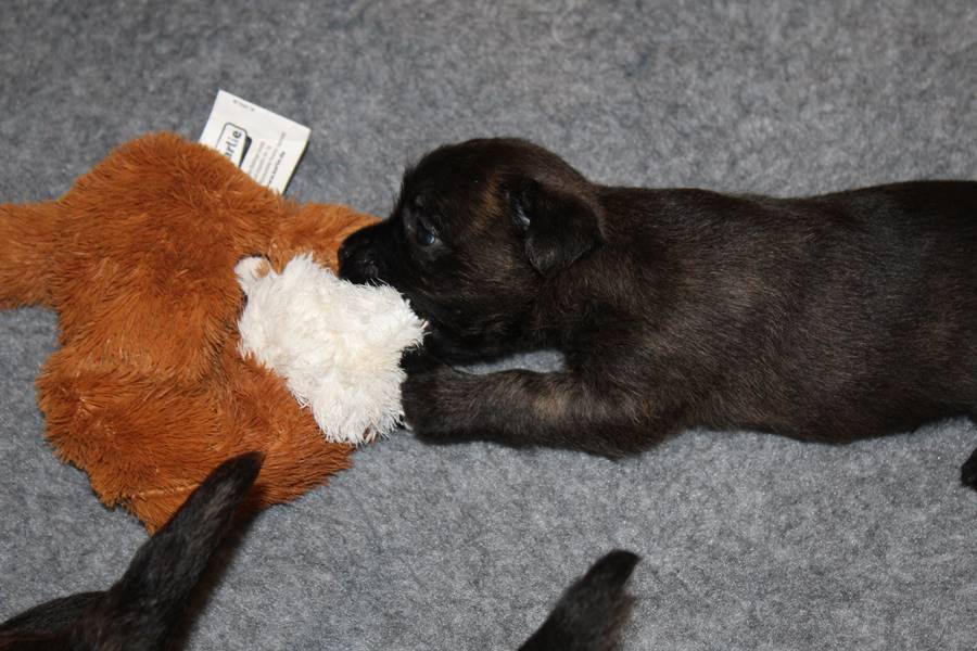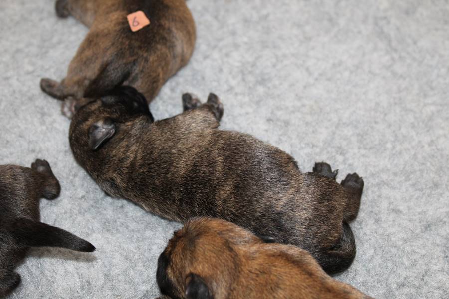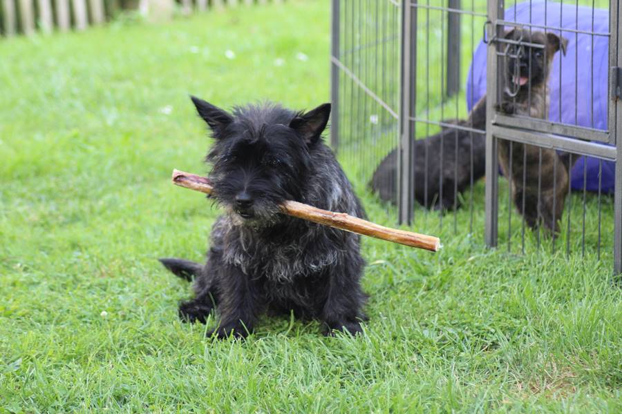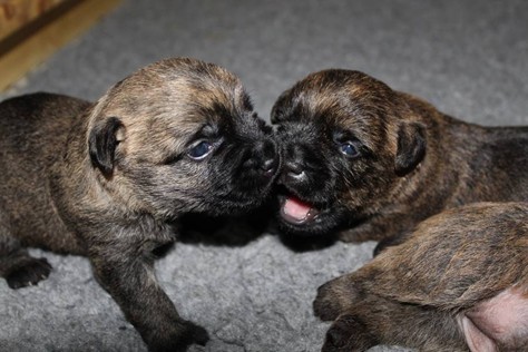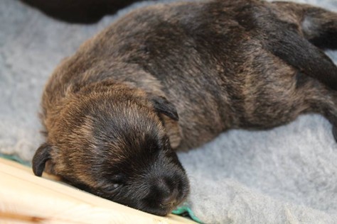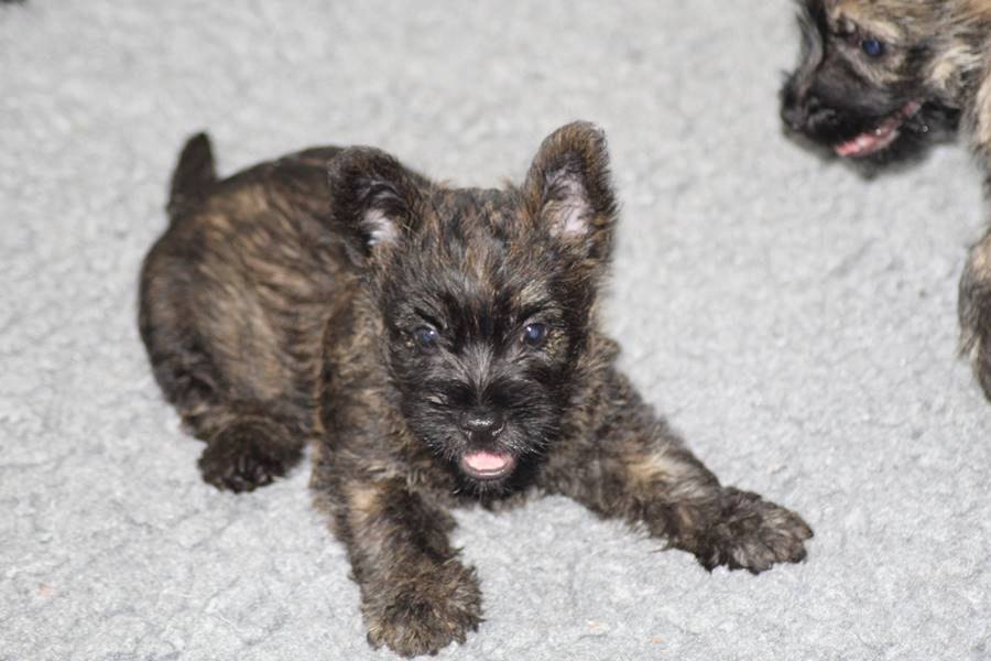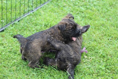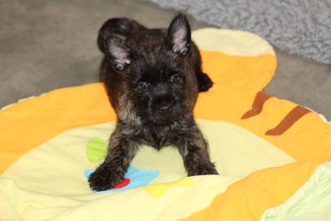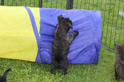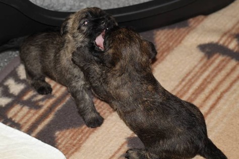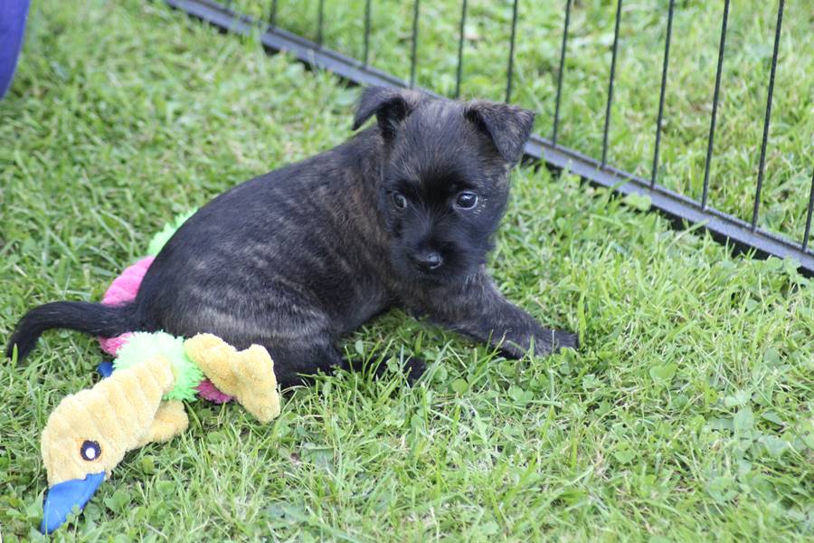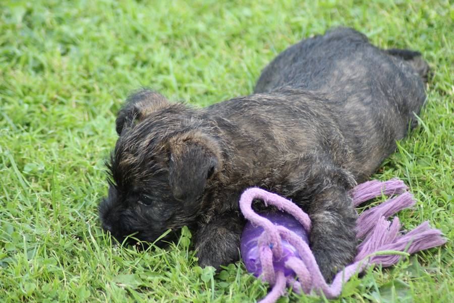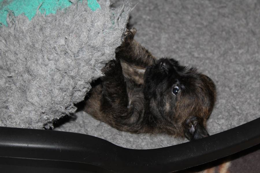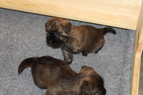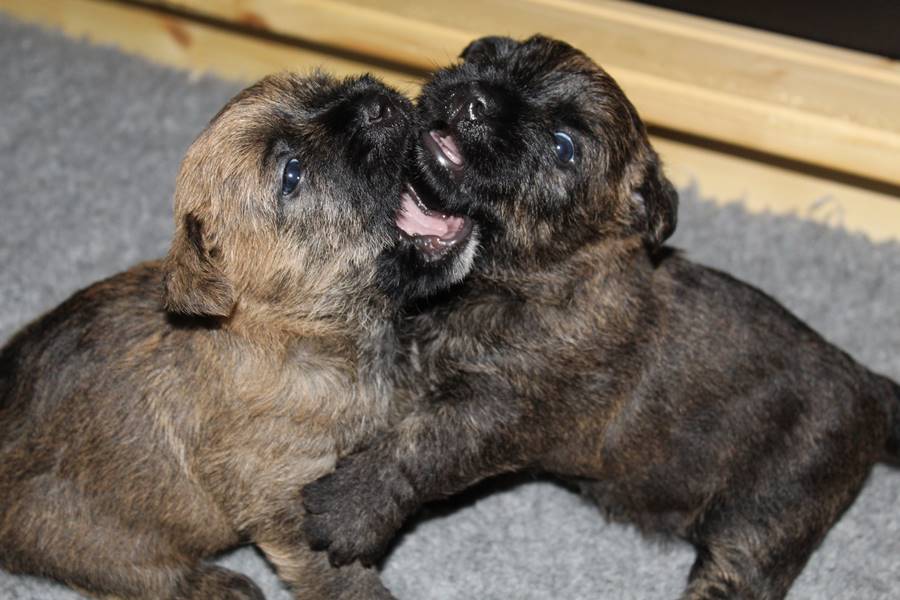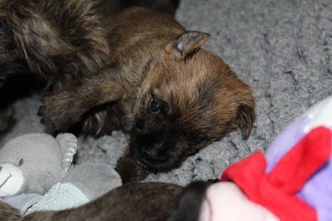 Da das Wetter momentan wieder so schlecht ist, dass die Kleinen nicht nach draußen können, toben sie drinnen umso wilder. Vergangene Woche ging die Reise mit dem Auto zum Tierarzt. Alle waren während der halbstündigen Fahrt recht brav. Beim Tierarzt zeigten sie, was ein echter Cairn-Terrier ist - Kein einziges Quieken. Die Zehn waren das Highlight der Tierarztpraxis. Alle wollten sie anschauen.