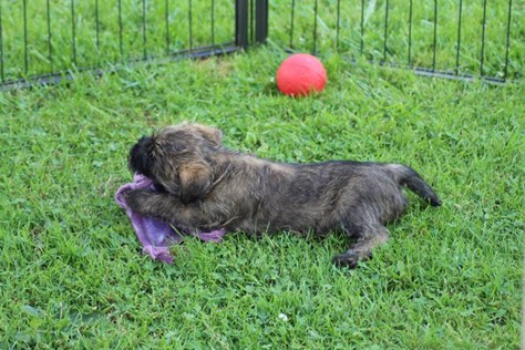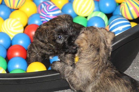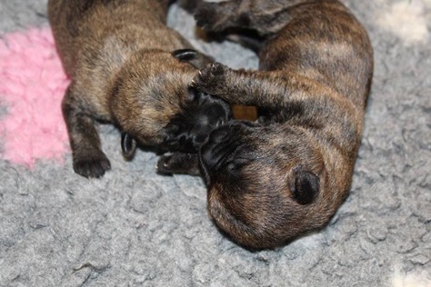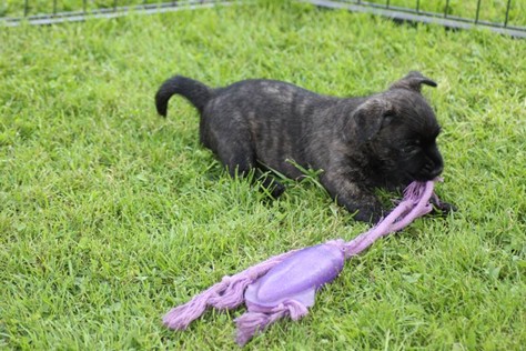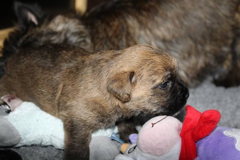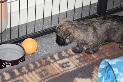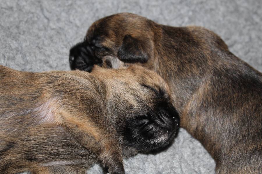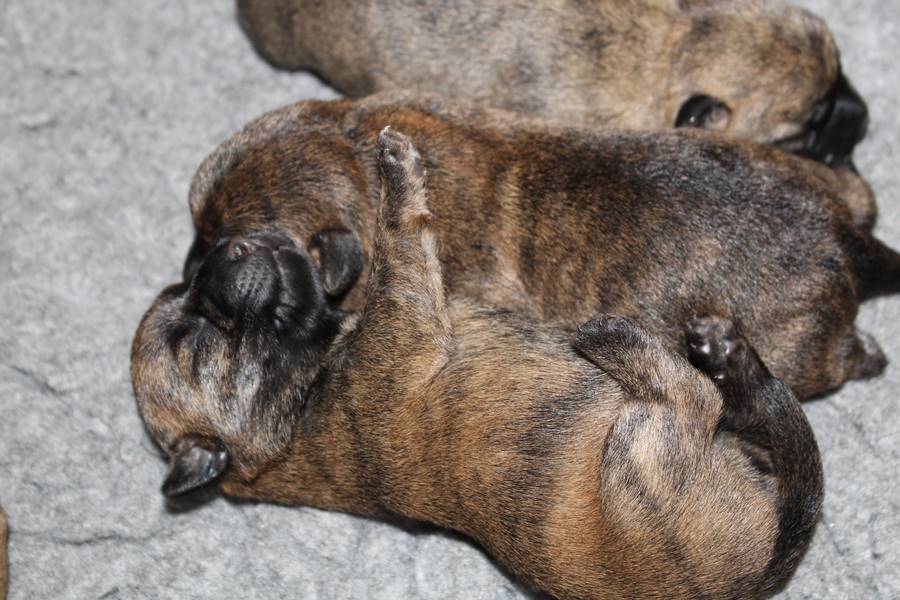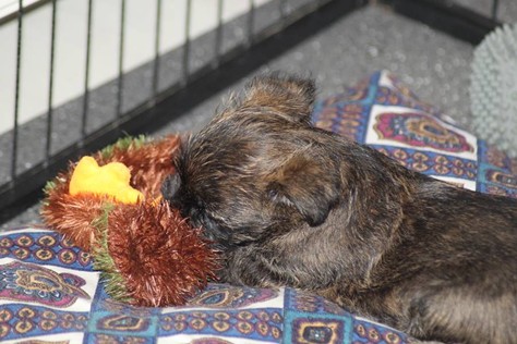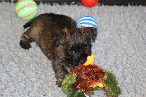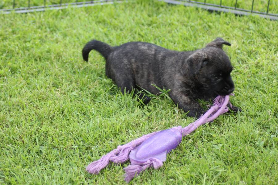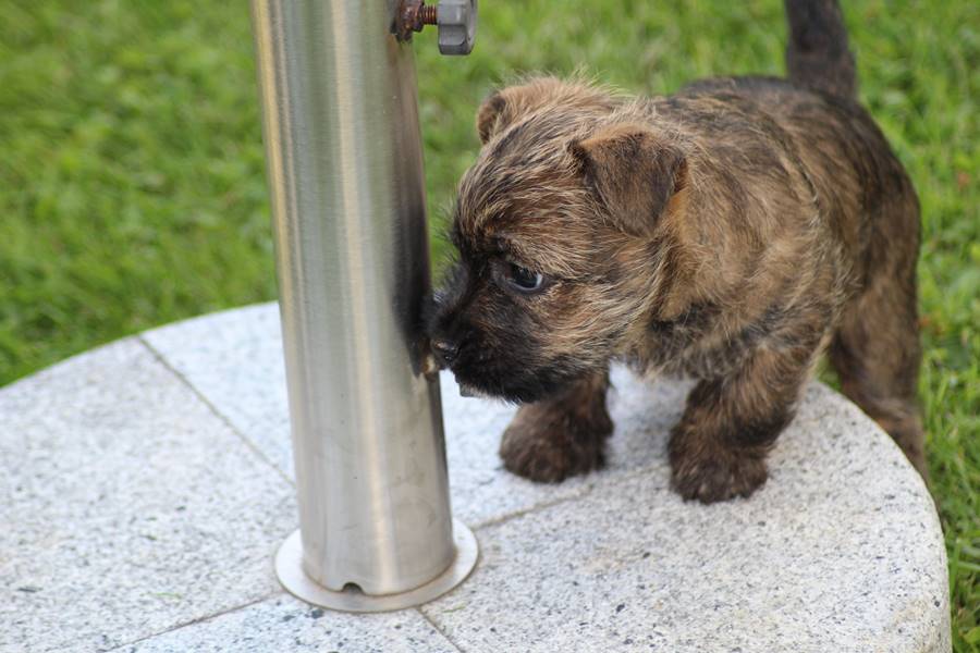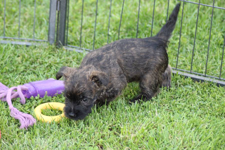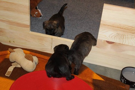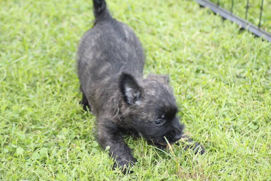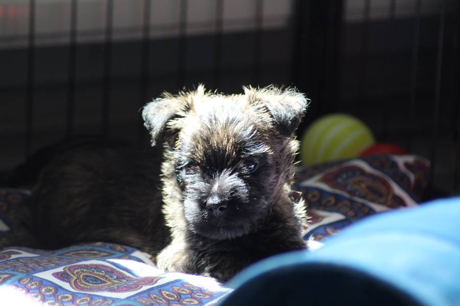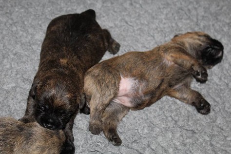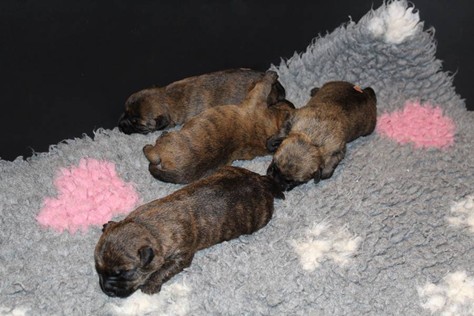 Da das Wetter momentan wieder so schlecht ist, dass die Kleinen nicht nach draußen können, toben sie drinnen umso wilder. Vergangene Woche ging die Reise mit dem Auto zum Tierarzt. Alle waren während der halbstündigen Fahrt recht brav. Beim Tierarzt zeigten sie, was ein echter Cairn-Terrier ist - Kein einziges Quieken. Die Zehn waren das Highlight der Tierarztpraxis. Alle wollten sie anschauen.