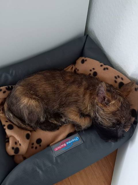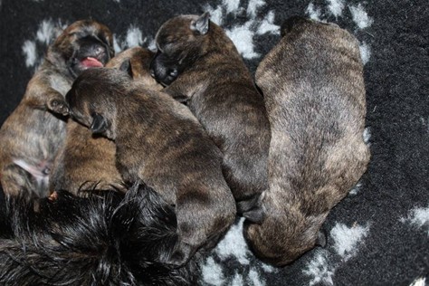 Am Abend des 30. Junis begann die große Reise ins Ungewisse. Bis pünktlich vor Mitternacht legten die drei Mädchen gemeinsam mit ihrem Bruder die erste Etappe dieser Reise zurück. Nach dieser äußerst anstrengenden Reise werden die vier Kleinen nun bereits seit drei Tagen mit und von ihrer Mama Dara in der kuscheligen Wurfkiste beherbergt. Dort lassen sie es sich richtig gut gehen: Trinken viel leckere Milch, schlafen, wachsen und nehmen kräftig zu.